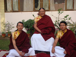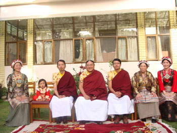 首先是法王向壇城佛菩薩頂禮獻哈達,之後由法王子們向法王獻哈達賀新年,緊接著法王府的所有成員,向法王、法王子獻哈達賀新年。 接下來是例行的法王府成員新年合照,我們附上法王一家人的全家福之照片,和大家分享,另有三位佛母合照的照片。 在早上九點,法王及法王子、佛母們,蒞臨薩迦寺,帶領著全體薩迦寺、尼師廟所有的僧尼二眾,唸誦十六阿羅漢的經文,以及新年祝賀吉祥文,大家歡喜的吃吉祥飯、喝酥油茶。 (在此告訴大家一個小秘密,法王一年只喝二次酥油茶,一次是西藏新年,另一次是藏曆 八月初一 ,法王生日,在薩迦寺的祝壽慶典上) 在吃完吉祥飯、喝完酥油茶之後,由智慧金剛仁波切代表全體僧眾,向薩迦法王獻「身、語、意」的曼達。 之後,所有僧尼二眾依序向法王及法王子獻上哈達,大家唸誦薩迦法王長壽祈請文、眾生安樂頌,迴向新的一年開始,所有一切眾生皆平安喜樂,藏曆新年的慶典活動,就在這簡單而隆重、順利圓滿。