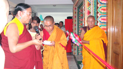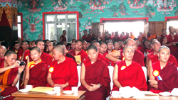 薩迦尼師佛教大學開募典禮 ( 2009年9月26日 ) 在藏傳佛教裡、印度、尼泊爾等地已經有許多男眾僧侶的佛學院,但尼師佛教大學,因緣一直未能俱足,遲遲未能建立。 很高興的跟大家報告,經由薩迦法王大力的倡導,薩迦的尼師佛教大學終於在今年9月26日正式成立。 其實希望能夠進入尼師佛教大學的尼眾很多,但由於經費有限,今年只酌收25位尼師修學。 尼師佛教大學和薩迦大學、能仁佛學院一樣,所有學員皆需學習五大部論:如因明、般若、中觀、釋量論…等。 9月26日當天,在薩迦法王、老祿頂堪仟仁波切、大寶金剛仁波切、祿頂堪仟仁波切、塔澤仁波切…等,以及其它教派的代表祝福下,薩迦尼師佛教大學舉行了簡單隆重的開光典禮。 為了慶祝薩迦尼師佛教大學正式開募,薩迦法王於9月27日當天慈悲給予大眾文殊菩薩灌頂,嘉冕所有學僧們都能夠在佛教的哲理上,有更進一步的精研,以利將來弘法利生。 我們衷心希望將來能籌募更多的經費,以便能夠讓更多有志學習佛教哲理的尼僧們研讀。 法王在台弘法中心 本中心於97年8月10日由法王之祝福下成立,並期許成為法王在台弘法之主要中心。